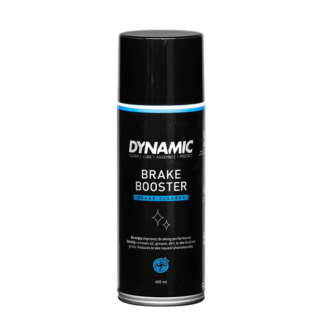 Verbessere deine Bremsleistung mit dem Dynamic Brake Booster. Dieser Bremsenreiniger hilft, das Quietschen deiner Bremsen drastisch zu reduzieren und entfernt schnell Schmutz, Dreck, Öl und andere Verunreinigungen. Saubere Bremsen und Bremsbeläge sind leistungsfähiger und langlebiger.Brake Booster ist ein Bremsenreiniger für deine Scheiben- und Felgenbremsen. Um die beste Bremsleistung zu erzielen, müssen deine Bremsen frei von Verunreinigungen sein.Er entfernt schnell und zuverlässig Schmutz, Öl und andere Verunreinigungen. Das starke Lösungsmittel entfernt selbst die hartnäckigsten Verschmutzungen, ohne die Teile der Bremsen anzugreifen. Die Formel ist sicher in der Verwendung auf allen Materialien wie Gummi, Kunststoff, Metall und Karbon. Das einfach anzuwendende Spray hilft, den Reiniger gleichmässig auf die Bremsen aufzutragen. Brake Booster trocknet schnell und hinterlässt keine Rückstände.Brake Booster kann für alle Bremsenteile verwendet werden, einschliesslich Scheibenbremsen, Bremsbeläge und Bremsflanken aus Aluminium oder Karbon.Die Dose vor Gebrauch gut schütteln und einfach auf die zu reinigende Stelle aufsprühen.Es ist ebenfalls möglich, den Reiniger auf ein sauberes Tuch zu sprühen und damit die Komponenten zu reinigen.Wische die überschüssige Flüssigkeit ab und lasse den Brake Booster verdunsten bevor du los fährst.