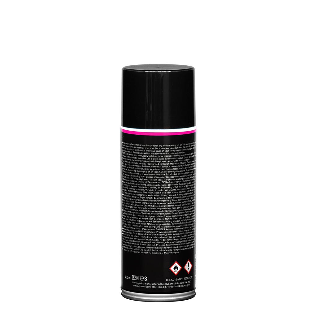: Sweatopia ist das ultimative Schutzspray für alle Indoor-Trainingsgeräte wie Fahrradtrainer und Fitnessgeräte. Es verdrängt die Feuchtigkeit und hinterlässt eine Schutzschicht auf Ihren Geräten, um die schädlichen Auswirkungen von Schweiss und Kondenswasser zu verhindern.