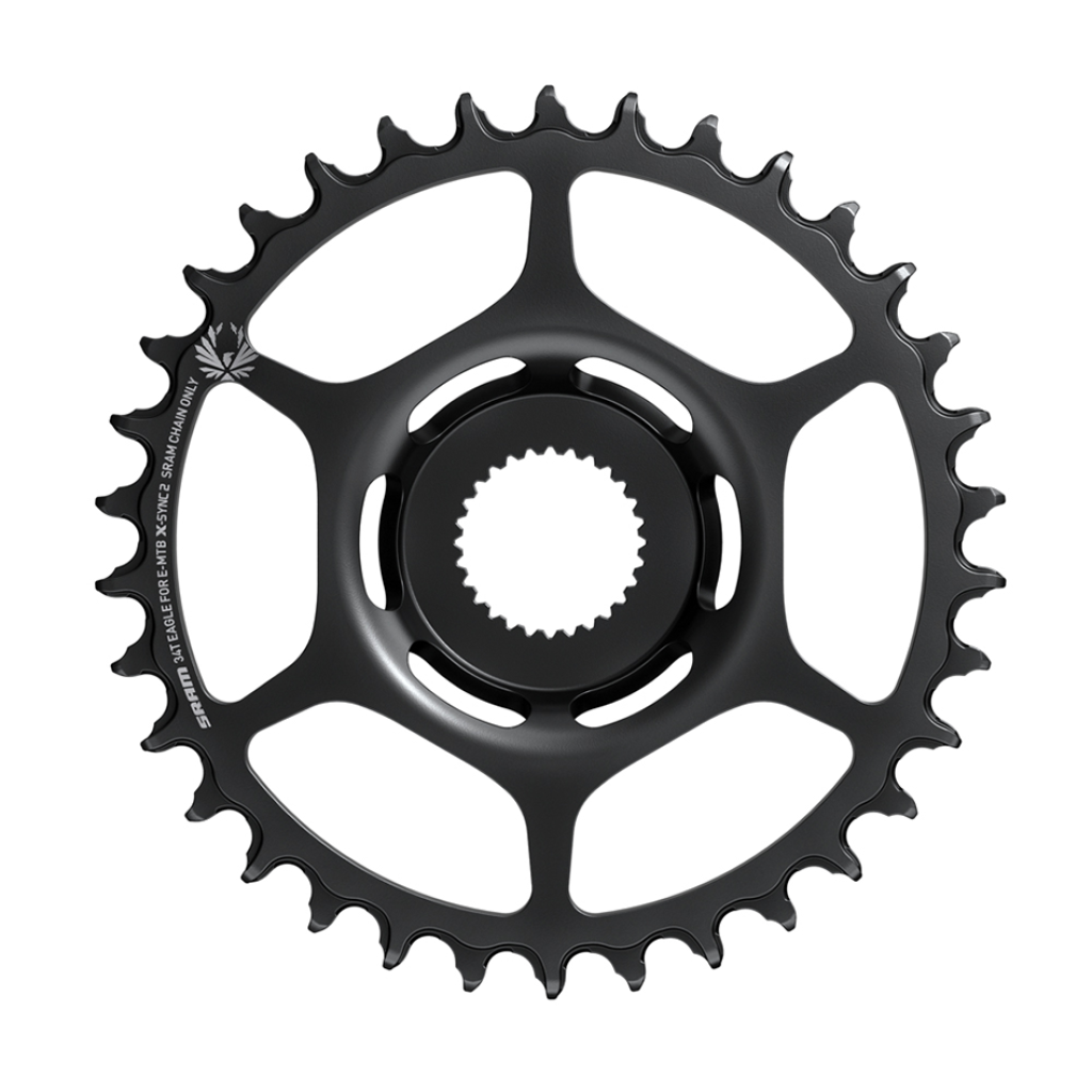 Gebaut für die Bedürfnisse von E-Mountainbikern, mit der bewährten Kettenführung der X-SYNC™2 Eagle™-Kettenblätter, bekannt aus allen SRAM 1x™-Antrieben. Jetzt auch für Bosch-Motoren. Die zupackende, schmale Zahnform und die angeschrägten Übergänge halten die Kette auch bei Schräglauf unter Kontrolle. Aussparungen für gute Selbstreinigung.