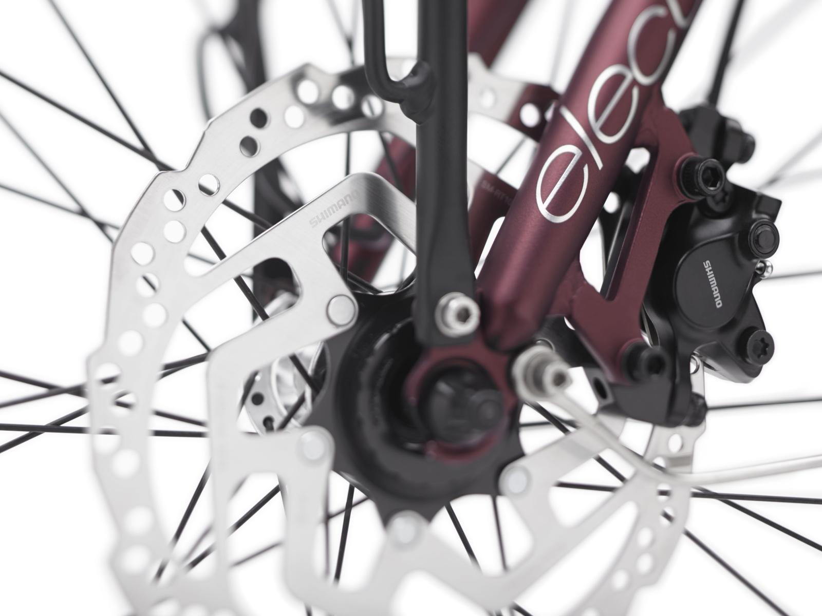 Vorderradbremse: Hydraulische Scheibenbremse von Shimano // Shimano MT-200 hydraulischer Bremssattel // Hydraulische Scheibenbremsen von Tektro // Hydraulische Scheibenbremsen von Tektro