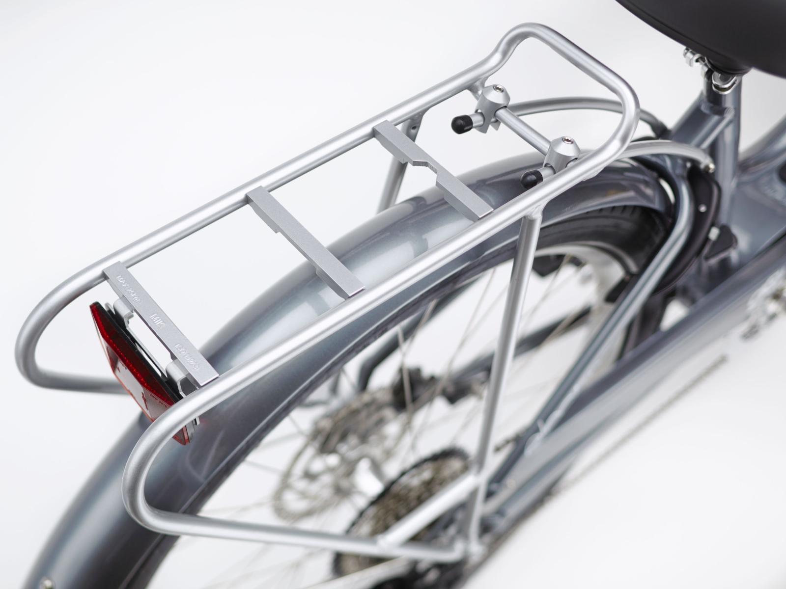 - Eine Lichtanlage, lackierte Schutzbleche, ein integriertes ABUS-Rahmenschloss und ein MIK-Heckgepäckträger runden das Gesamtpaket ab.
