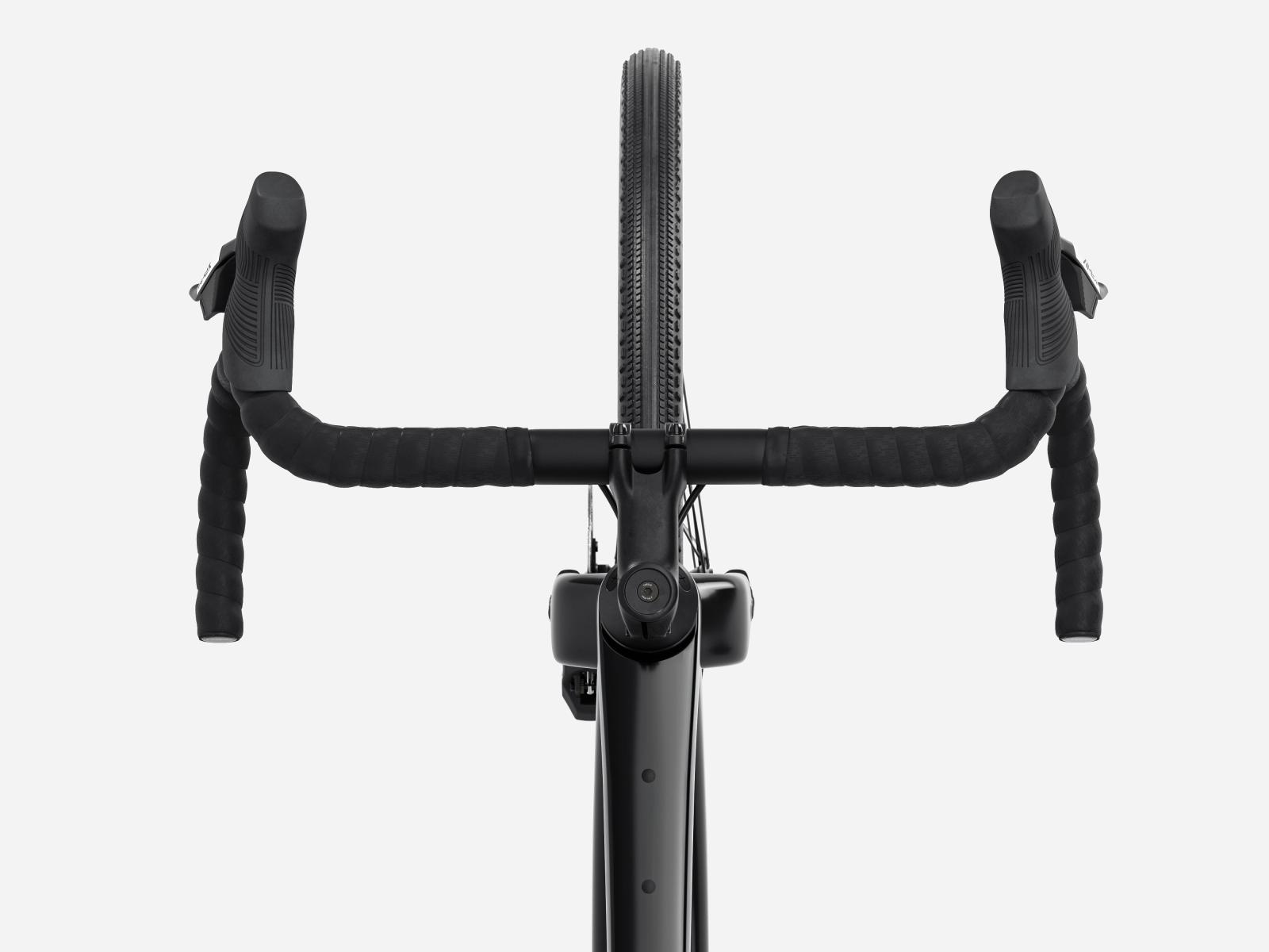 Einen Rahmen aus 500 Series OCLV Carbon samt Carbongabel, Staufach im Unterrohr, Befestigungsmöglichkeiten an Rahmen und Gabel und Platz für Reifen bis 50 mm (wie gemessen). Eine komplett drahtlose SRAM Apex XPLR AXS 1x12-Schaltung, hydraulische Scheibenbremsen, eine Carbonsattelstütze und Bontrager Paradigm 23 Tubeless-Ready-Laufräder mit 42 mm breiten Tubeless-Ready-Reifen.