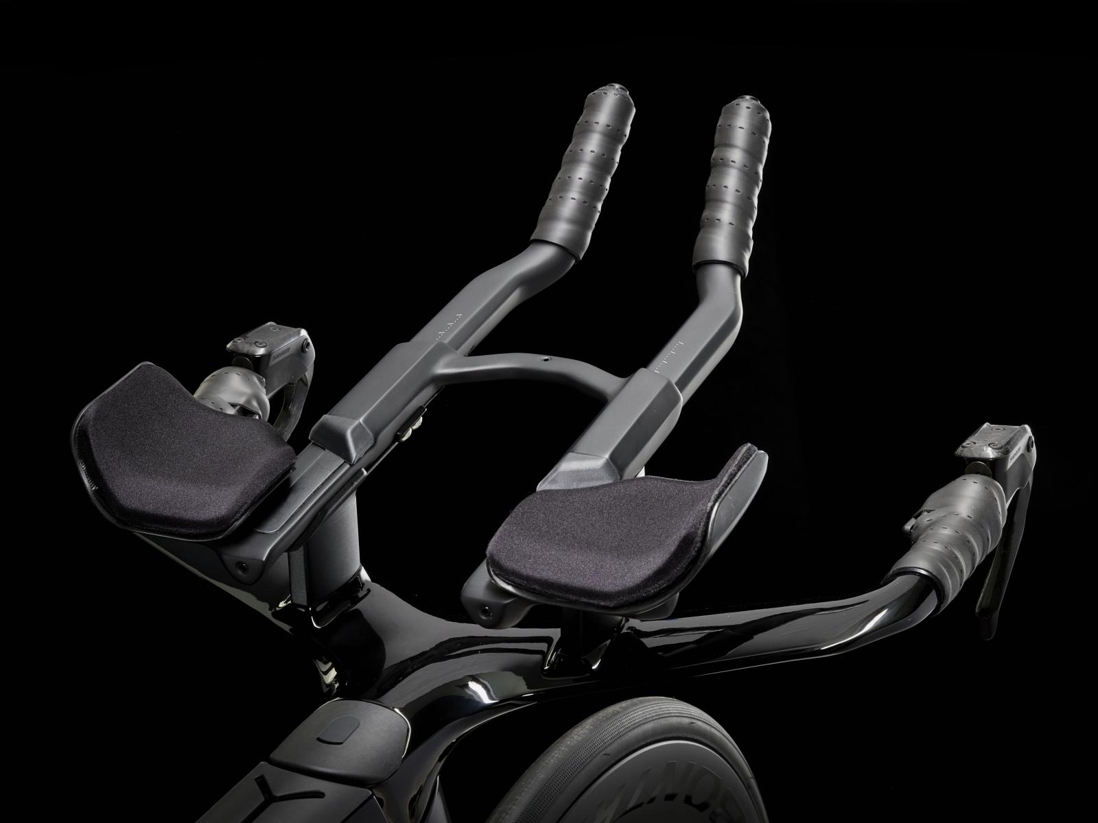 Einen ultraleichten Rahmen aus 800 Series OCLV Carbon, windschnittige Rohre mit Kammtail Virtual Foil-Profil (KVF), eine Speed Concept-Carbongabel mit aerodynamischem Profil, vibrationsdämpfendes IsoSpeed, integrierte Aufbewahrungslösungen für Verpflegung, Flüssigkeit und Pannenkit, einen drahtlosen, elektronischen SRAM Force AXS D2 12fach-Antrieb mit SRAM AXS Clics-Schalthebeln, einen SRAM Force AXS-Powermeter, einen vollständig integrierten Lenker samt Vorbau, einen triathlonspezifischen Bontrager Hilo Comp-Sattel für eine aggressive Aero-Sitzposition, Scheibenbremsen für zuverlässige Bremsleistung und Bontrager Aeolus Pro 51-
