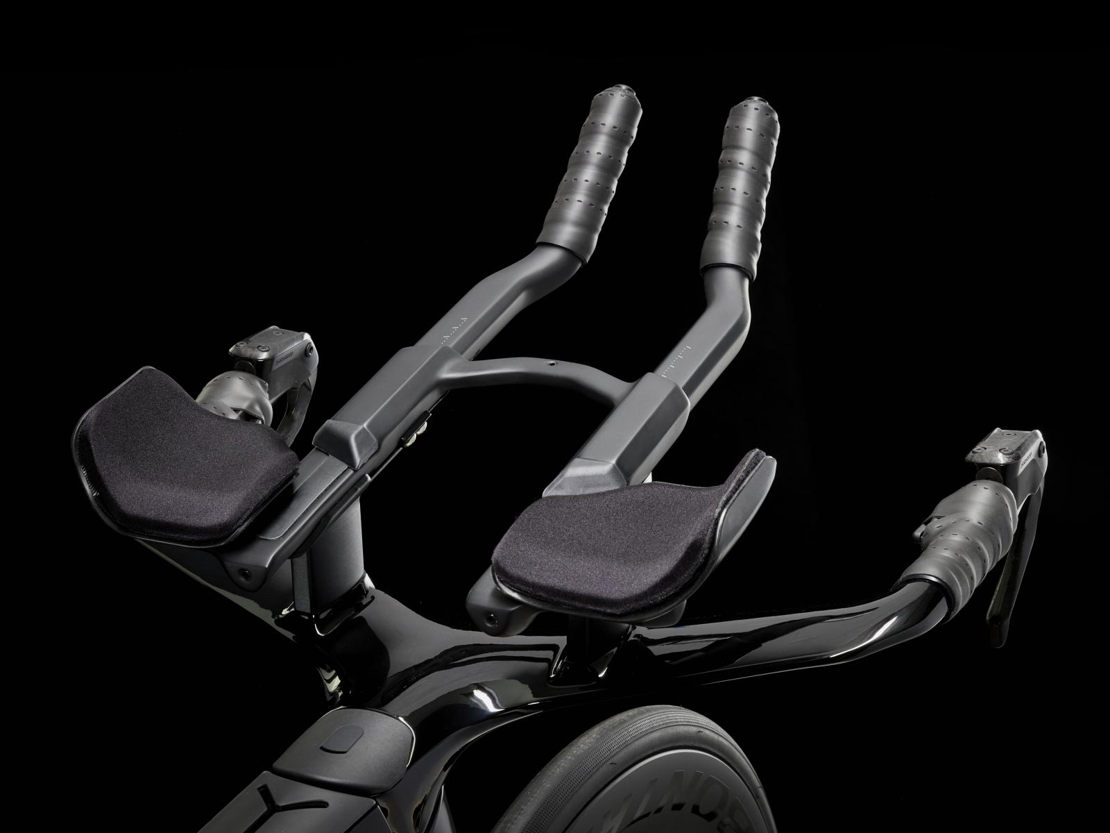 Einen ultraleichten Rahmen aus 800 Series OCLV Carbon, windschnittige Rohre mit Kammtail Virtual Foil-Profil (KVF), eine Speed Concept-Carbongabel mit aerodynamischem Profil, vibrationsdämpfendes IsoSpeed, integrierte Aufbewahrungslösungen für Verpflegung, Flüssigkeit und Pannenkit, einen drahtlosen, elektronischen SRAM Force AXS D2 12fach-Antrieb mit SRAM AXS Clics-Schalthebeln, einen SRAM Force AXS-Powermeter, einen vollständig integrierten Lenker samt Vorbau, einen triathlonspezifischen Bontrager Hilo Comp-Sattel für eine aggressive Aero-Sitzposition, Scheibenbremsen für zuverlässige Bremsleistung und Bontrager Aeolus Pro 51-